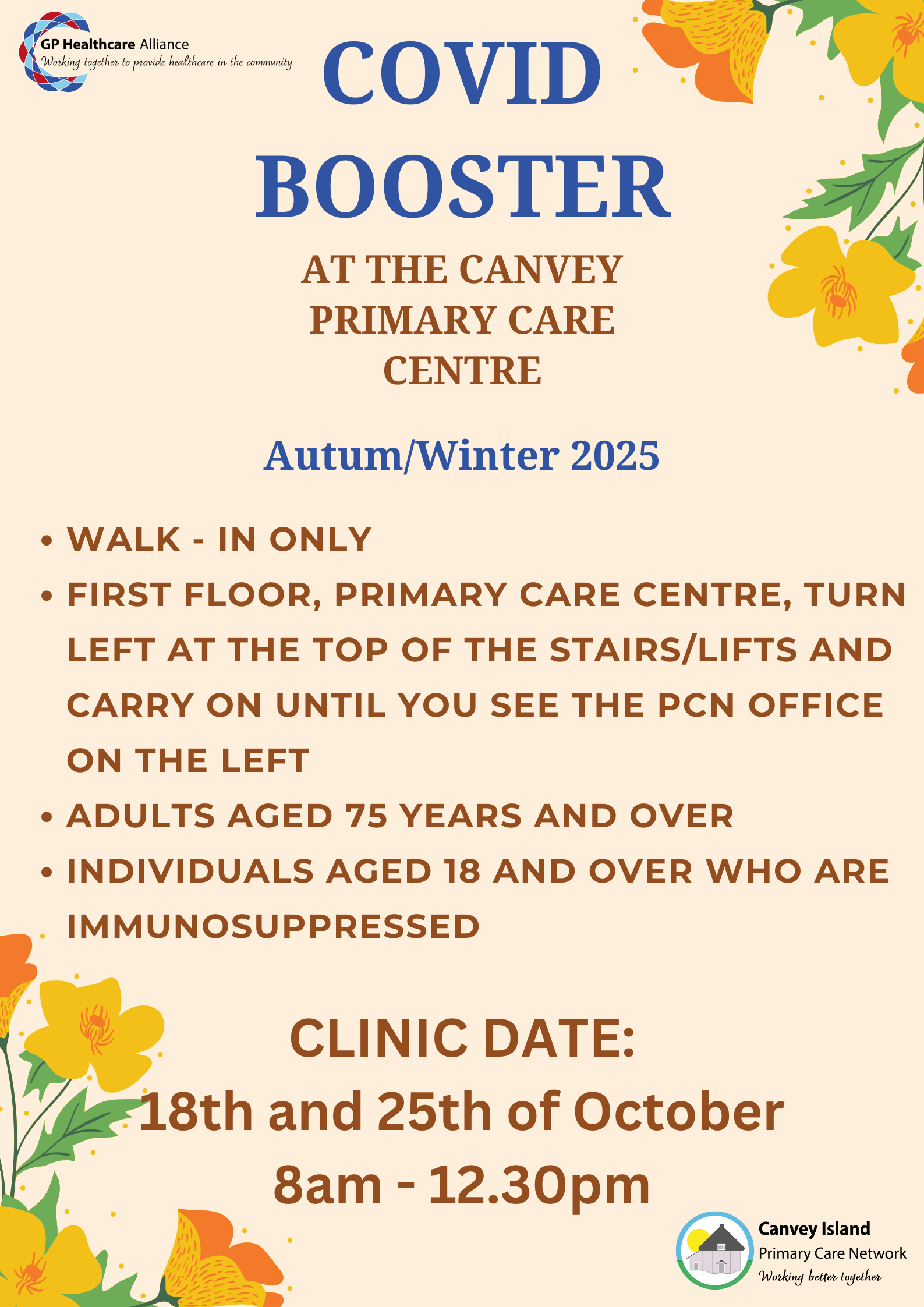 Canvey primary care centre is hosting Covid Boosters this Autum/Winter. If you are age 75 and over or are aged 18 and over who are immunosuppressed, come on down.